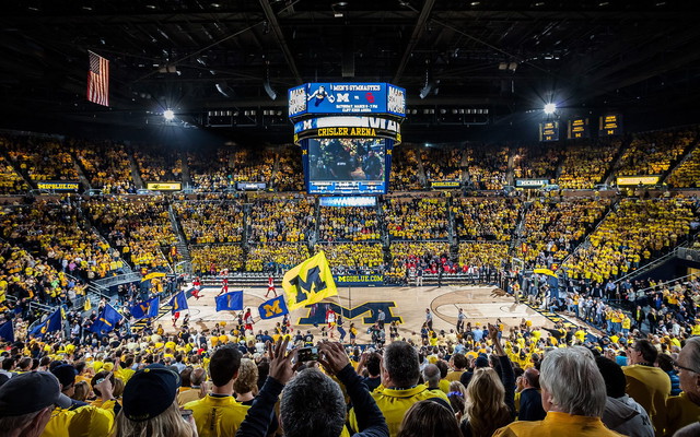 The University of Michigan’s football stadium is the largest in America. The record crowd in the “Big House” is 115,109 people. The University of Michigan’s basketball arena’s record crowd is 16,847. Combined, they hold 131,956 people, which is very close to the one in 130,252 number.